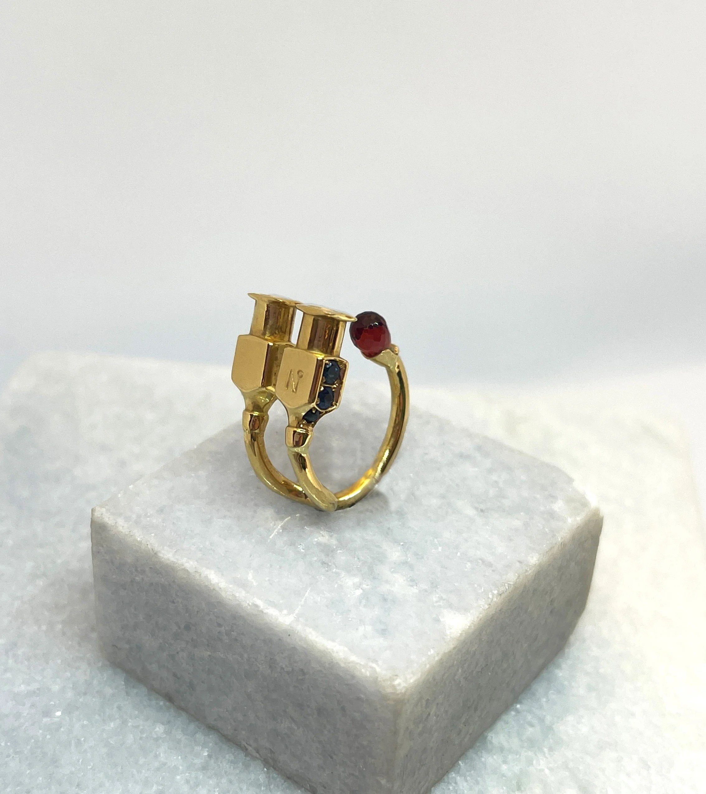 19.2K gold AU, 33 saphires, 6 rubies & GARNET